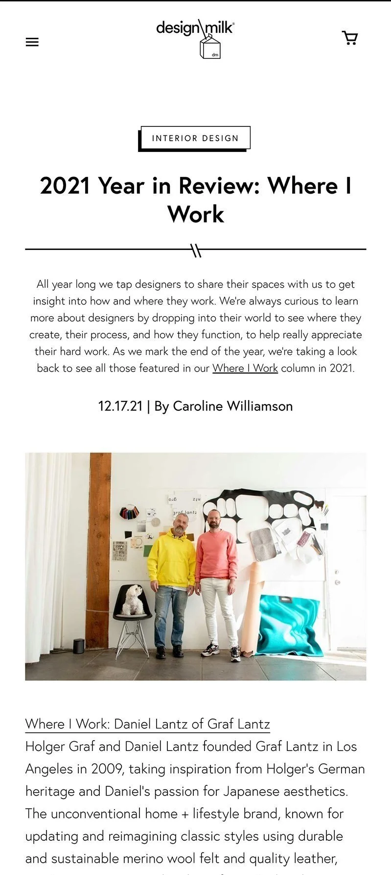 Thanks to our efforts Graf Lantz’s masks were also featured in WIRED as one of the “19 Face Masks We Actually Like to Wear,” as well as Fast Company, Forbes, Esquire, Gear Patrol, The Daily Beast, Pure Wow, Business Insider, Well + Good, Men’s Health, Real Simple, and Design Milk, to name a few.